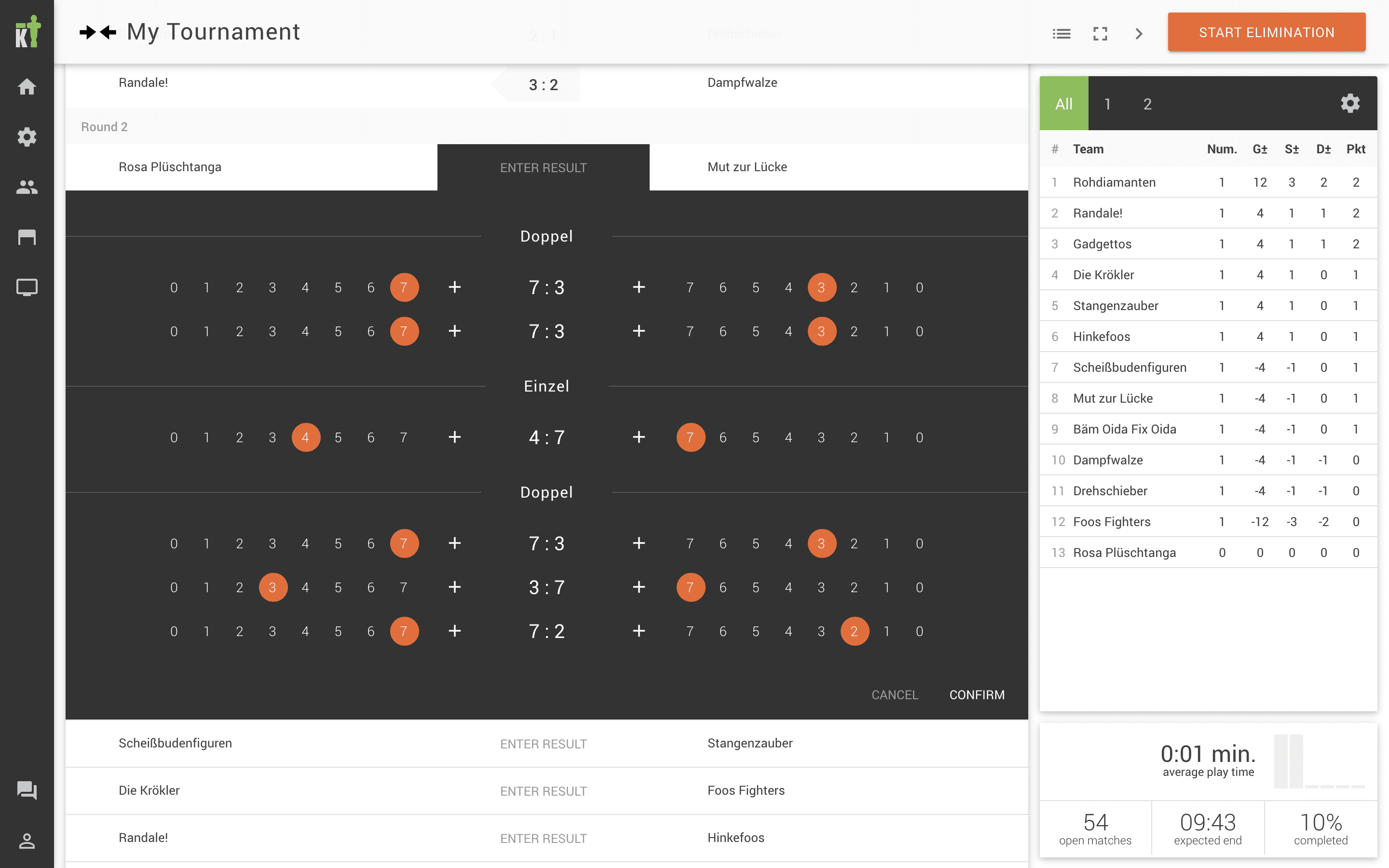 The Kickertool is hand crafted by two passionate foosball players with the intention to improve the organization of tournaments. We are constantly develpoing the software, with the help of our lovely users, who gave us awesome feedback.